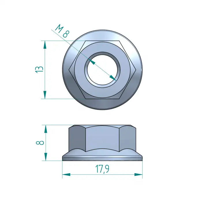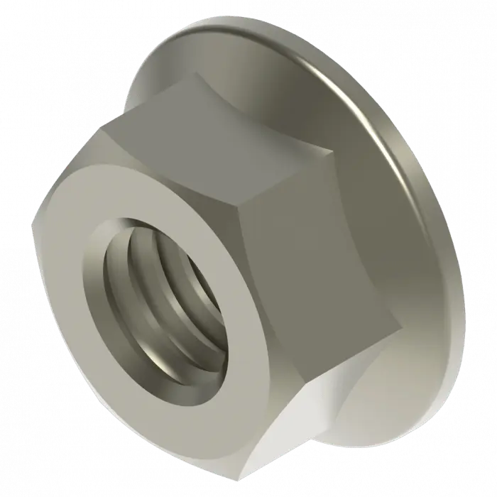 Bevestig uw M8 roestvrijstalen borgmoer DIN 6923A – ideaal voor trillingsbestendige verbindingen in industriële en poorttoepassingen.