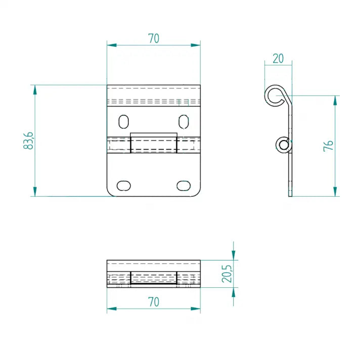 • Origineel ConDoor-scharnier voor panelen zonder vingerbeschermingssysteem