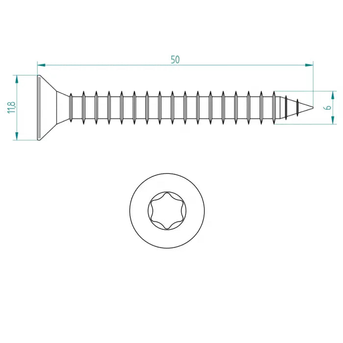 Verzonken spaanplaatschroef 6×50 mm | Torx 30 | Verzinkt
