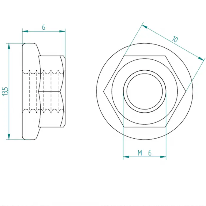 De M6 getande borgmoer is bijzonder geschikt voor poortsystemen die onderhevig zijn aan veel beweging en trillingen. De getande borgflens grijpt in het oppervlak en voorkomt betrouwbaar losraken.