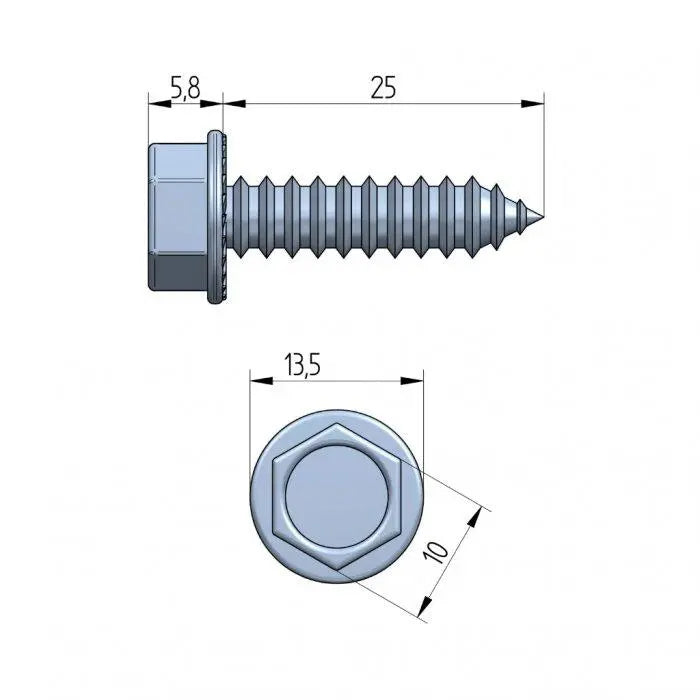 Deurschroef 25 mm | Kop 10 mm | Verzinkt | Scharnierbevestiging voor panelen van 40–80 mm
